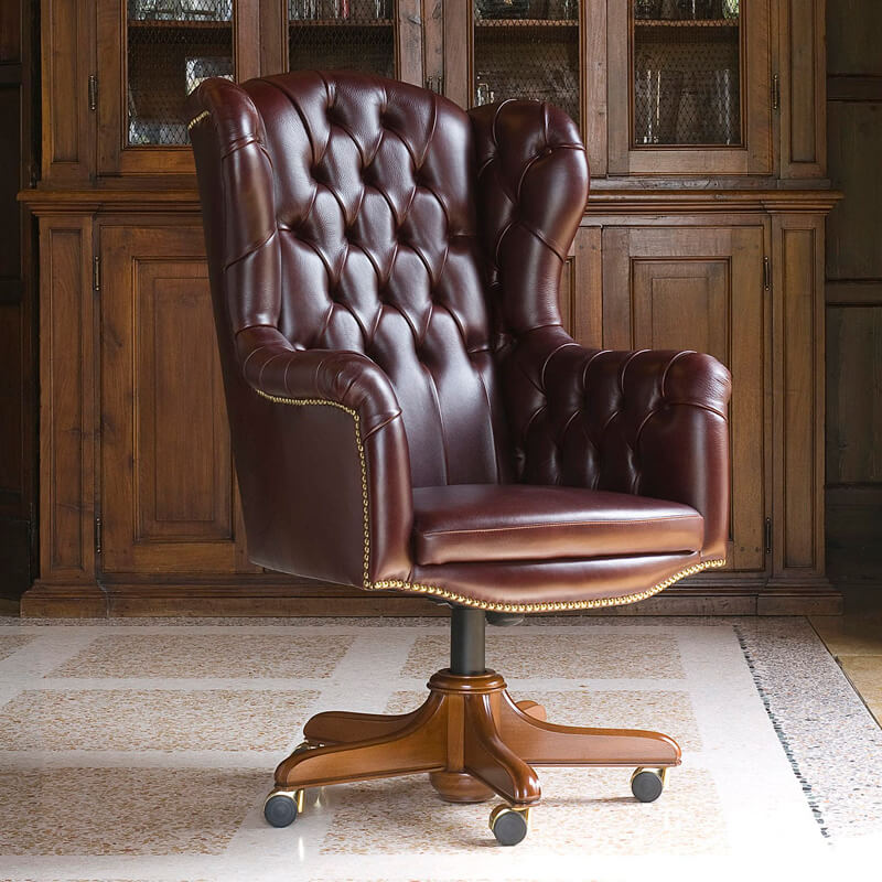 Desain Anggun: Ukiran halus dan lekukan klasik pada rangka kayu memberikan kesan “mahal” dan berkelas pada ruang kerja Anda.