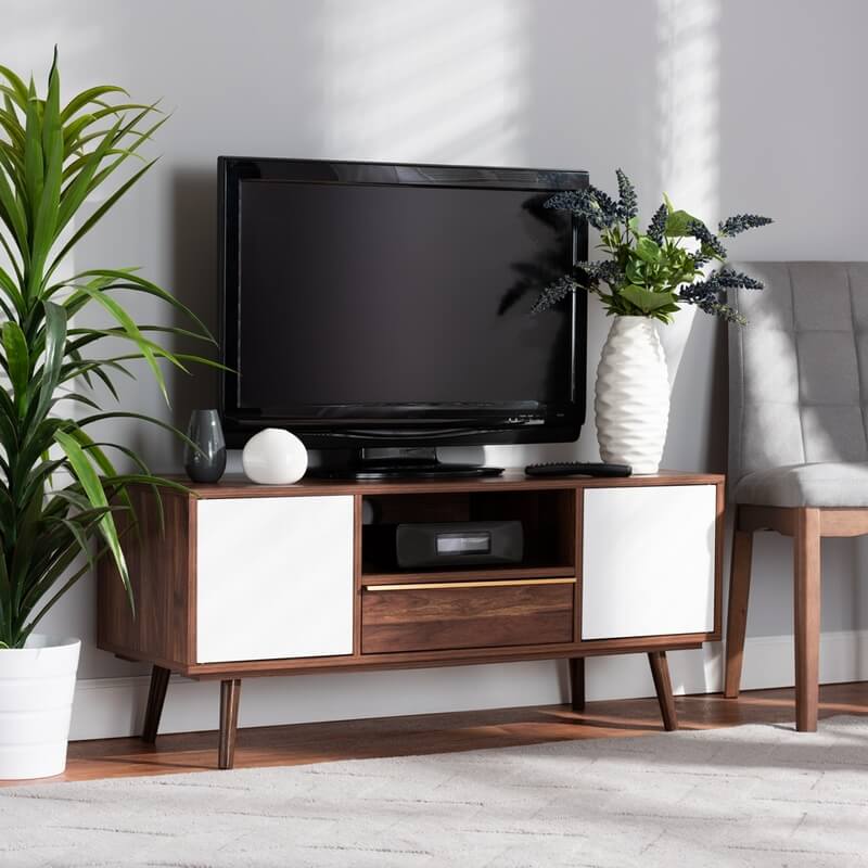 Meja TV ini cocok untuk interior minimalis, skandinavia, atau gaya kontemporer. Cocok dipadukan dengan sofa putih, dinding biru muda, atau aksen kayu natural. Menambah sentuhan hangat pada ruang tamu.