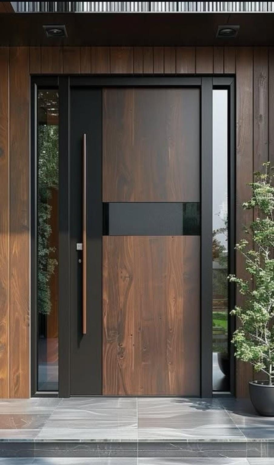Pintu Utama Modern Industrial “Titan Walnut” – Kombinasi Kayu & Black Matte dengan Sidelight